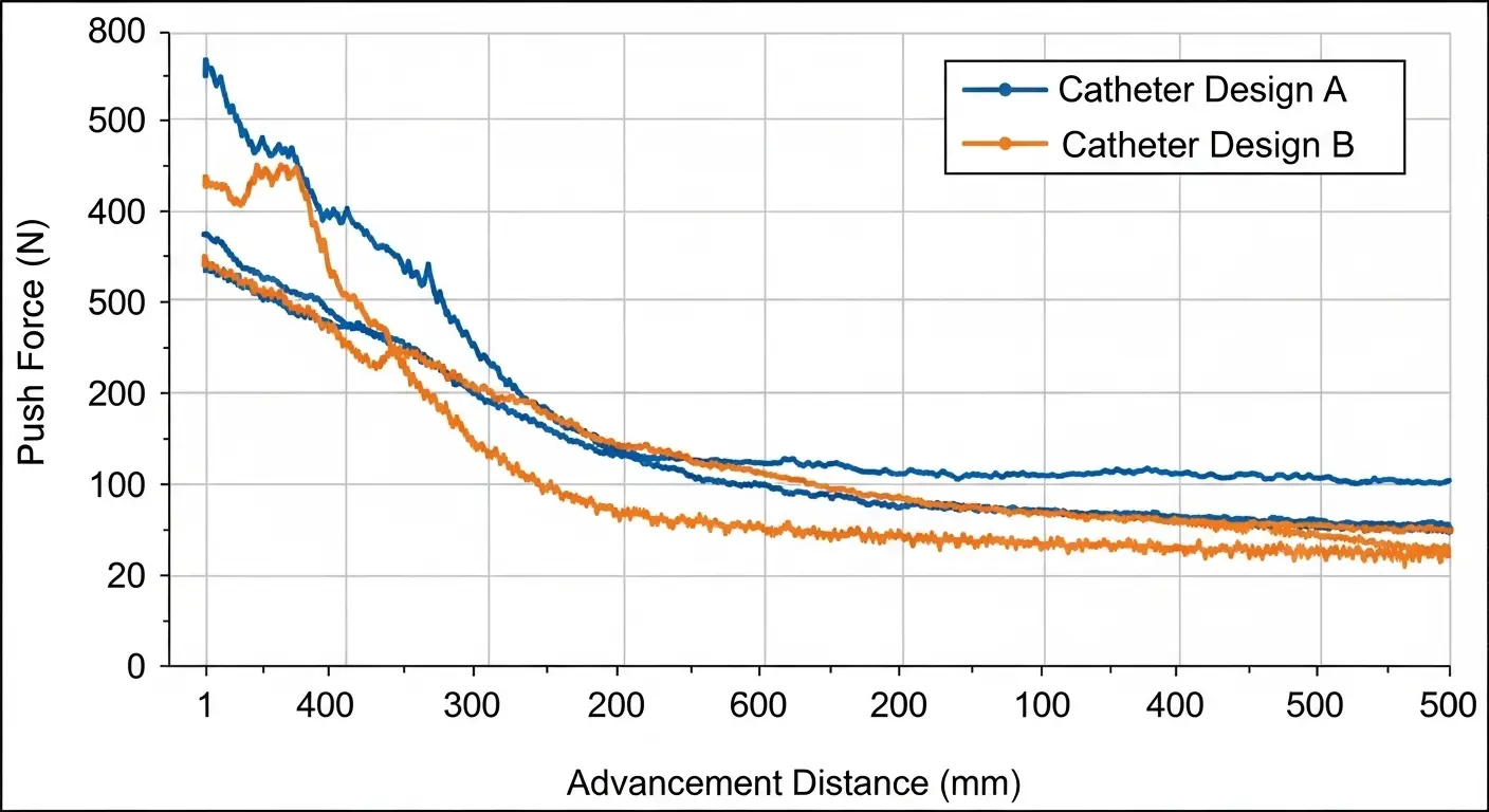How do you measure "Trackability" in a laboratory setting? We use benchtop glass or silicone models that mimic human vascular anatomy. We measure the "Push Force" required to advance the catheter through these models. A lower force reading generally indicates superior trackability.
